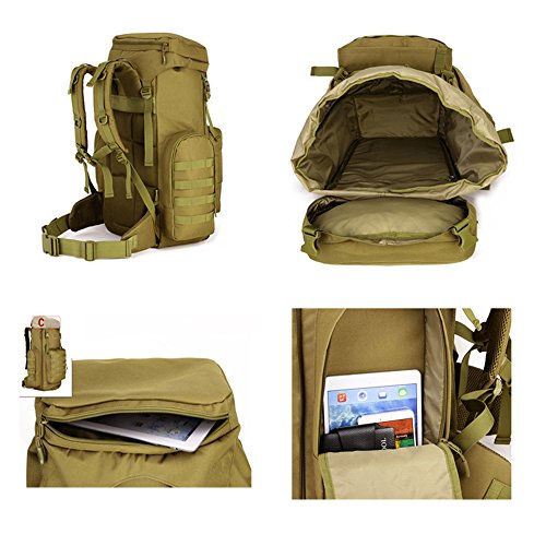 -. Title : Huntvp Military MOLLE Backpack Rucksack Tactical Gear Bag Adjustable 70-85L Large Capacity Assault Pack For Hunting Camping