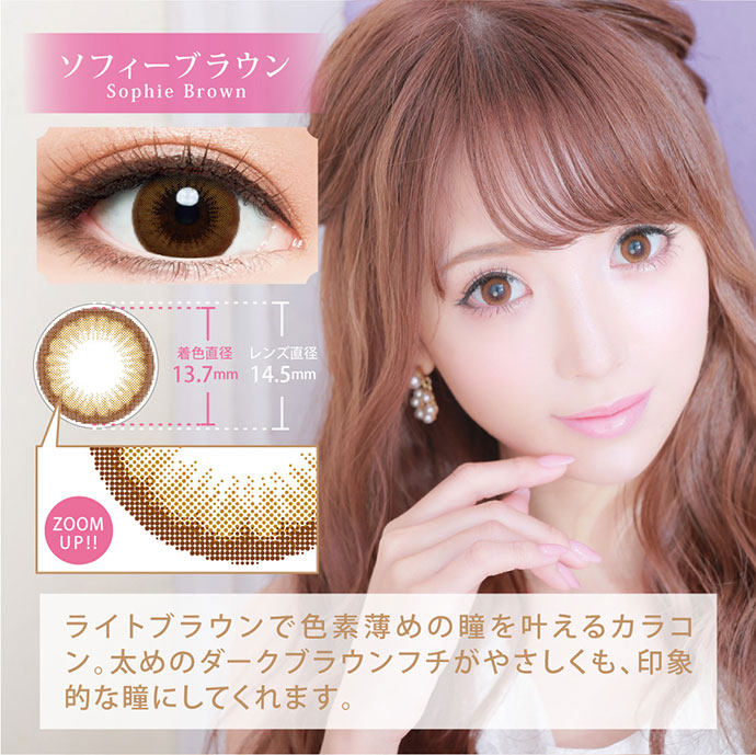 《ソフィーブラウン》 色素薄めに見せるライトブラウンがフチのダークブラウンと絶妙に馴染んで優しい女性を演出。