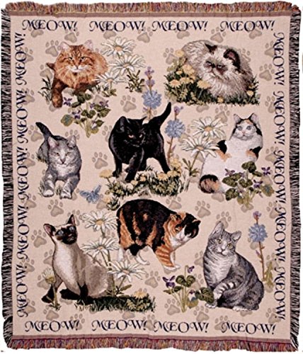 Simply Home Meow Mix Playful Cat Collage Tapestry Throw Blanket Made in the USA