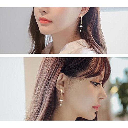 LuckySHD 925 Sterling Silver Bowknot Stud Earrings Long Tassel Crystal Ball Earrings-Gold