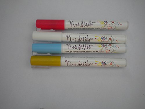 -. Binding : Kitchen -. Brand : Vino Scribo -. Color : Gold Silver Green Red -. EAN : 0634304760539 -. Feature : Non-toxic- fast drying. Vino Scribo easily washes with soap and water or in the dishwasher. -.Four fantastic colors per pack. Easy to use. Write on gifts / share your passion / make a statement! -.Great to identify vintage and type in storage / samples / etc. -.Perfect for gifts / bachelorette parties / baby showers / holiday gatherings! -.Work best on non-chilled beverages- cold glasses with moisture on the outside can cause the ink to run. -. Label : Vino Scribo -. Manufacturer : Vino Scribo -. Model : ww-1A4 -. MPN : ww-1A4 -. PackageQuantity : 1 -. PartNumber : ww-1A4 -. ProductGroup : Kitchen -. ProductTypeName : KITCHEN -. Publisher : Vino Scribo -. Studio : Vino Scribo -. Title : Vino Scribo Wine Glass Marking Pens- Personalize your party! Top Seller! (Gold Red White Blue) -. UPC : 634304760539