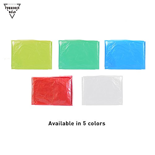- SUPER WATERPROOF - The portable emergency rain poncho with hood for both adult and kids uses high quality PE material with thickness 0.025mm, which is super waterproof. Taking such a rain cover in rainy days is a smart choice. Besides, 5 pieces of poncho in one package, which is suitable for family or friends for outdoor activities.