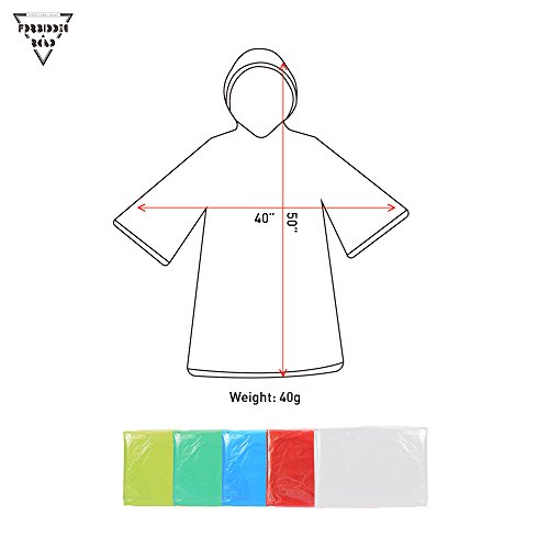 - ONE SIZE FIT ALL - The rain poncho comes with one size 40'' X 50'' (101cm X 127cm) suitable for both adult and youth, men and women, girls and boys. While backpacking outdoors, this disposable rain poncho with hood even could cover the backpacks avoid backpacks being wet. Backpackers and hikers do not need to buy an additional backpack rain cover.
