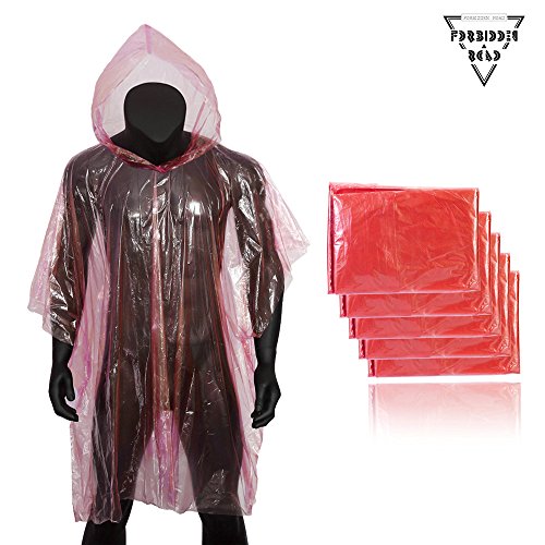 Forbidden Road Poncho with Hood 5 Pack ( One Size Fit All ) Emergency Disposable Rain Poncho Cover Raincoat Lightweight Super Waterproof for Camping Hiking Backpacking Traveling Fishing Outdoor
