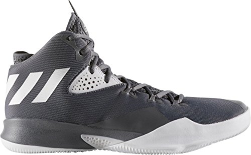 Suit up for the game and the season ahead in the adidas® Dual Threat 2017 basketball sneakers. Built with an updated cushioning system to make the shoe more lightweight, these shoes support you without weighing you down.Designed with a mid-cut silhouette, these sneakers blend support and stability, making them versatile enough for all positions on court. The updated cushioning system includes a secure foam collar to improve your fit at the ankle, and a foam midsole that provides lightweight cushioning on every landing. To round out these basketball sneakers, a circular traction outsole provides impressive grip perfect for fast cuts and quick directional changes. Rubber is used in the outsole to add durability, while synthetic overlays increase stability in key areas. Features: - Rubber outsole features circular traction pattern
