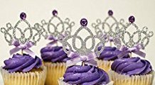 Crown Cupcake Toppers, 10 Pack Crown Girl Birthday Party Cupcake Topper, Royal Prince Baby Shower Decorations, Silver Crown Cupcake Toppers with...