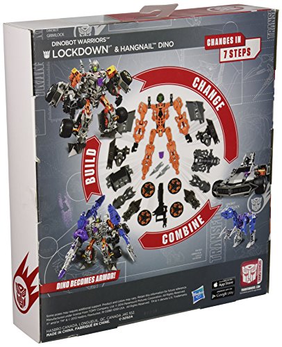 -. Binding : Toy -. Brand : Transformers -. EAN : 0630509247462 -. Feature : 57-piece Dinobot Warriors set lets you build Lockdown and Hangnail Dino figures in 2 modes / Lockdown can be built as robot warrior or combat vehicle / Build Hangnail Dino in Dino mode / Dino becomes armor / Convert your figures to the other mode or tear them down and build them again -. IsAdultProduct : 0 -. Label : Hasbro -. Manufacturer : Hasbro -. Model : A6167079 -. MPN : A6167079 -. PackageQuantity : 1 -. PartNumber : A6167079 -. ProductGroup : Toy -. ProductTypeName : TOYS_AND_GAMES -. Publisher : Hasbro -. Studio : Hasbro -. Title : Transformers Age of Extinction Construct-Bots Dinobot Warriors Lockdown and Hangnail Dino Buildable Action Figure -. UPC : 630509247462 -. Warranty : No Warranty