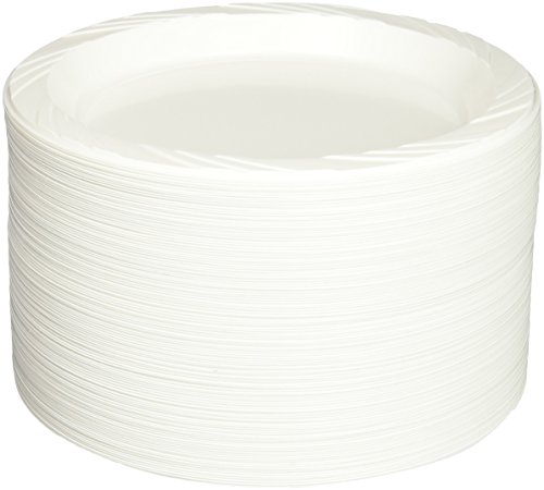 Genuine Joe GJO10329 Plastic Reusable/Disposable Plate, 9" Diameter, White (Pack of 125)