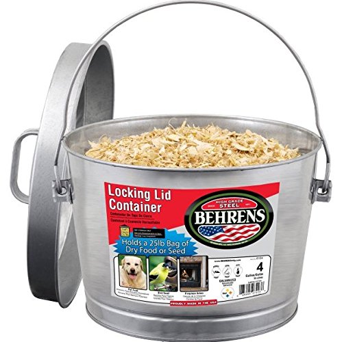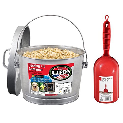 Studio : Behrens* Publisher : Behrens* Binding : Kitchen Product Description (Locking Lid Can Steel Dry Storage Behrens High Grade Steel 6104 4 Gal) Behrens 6104 4 Gal Silver Galvanized Steel Dry Storage Can seals tightly to keep contents from spilling. It is a suitable dry storage receptacle for pet food, bird seed, grass seed, bedding and trash. The Behrens can is rodent-proof and won't absorb odors. It has a large handle for easy transport and a wire reinforced rim. This high grade steel locking lid can is resistant to rust, fire and heat and it won't crack or fade. It holds up to 25 lbs of weight and can also be used for your cleaning supplies, motor oil, garden tools and other items. (Pet Food scoop) Fill your pet's dish using this Walmart Dog Food Scoop. It's made of heavy-duty materials and can hold up to two cups of dry kibble at a time. This pet scoop also features a built-in hanger for convenient storing. 0