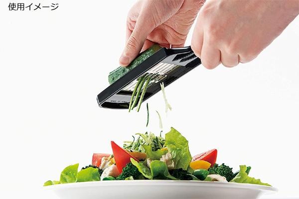 | 極薄の両刃なので軽い力で本格的な千切りが素早くできます。とり回ししやすいコンパクトサイズです。大根、にんじん、きゅうり等の千切りに大活躍しそうですね♪ |