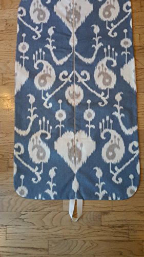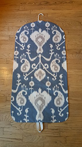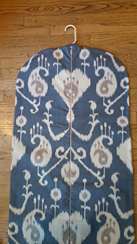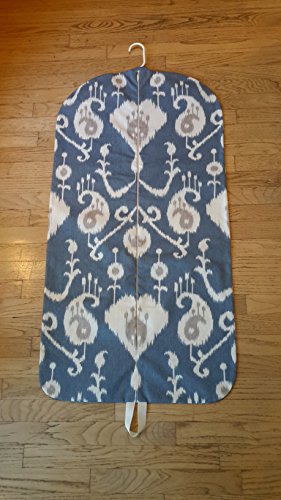 -. Brand : Carry It Well -. Color : Blue -. Department : womens -. Feature : Hanging garment bag, perfect for traveling in style / Width: 22 inches, Length 43 inches / 100% Cotton Fabric, Grosgrain Ribbon. Handmade in USA / Comfortably holds 3-5 garments, zips up the front with a grosgrain loop at bottom / Cold water wash and hang to dry. Great for travel or storage. -. Model : Blue and Tan Ikat Medallion -. PackageQuantity : 1 -. ProductGroup : Apparel -. ProductTypeName : LAGE -. Size : 22"x43" -. Title : Carry It Well Women's Indigo Blue and Tan Medallion Ikat Hanging Garment Bag