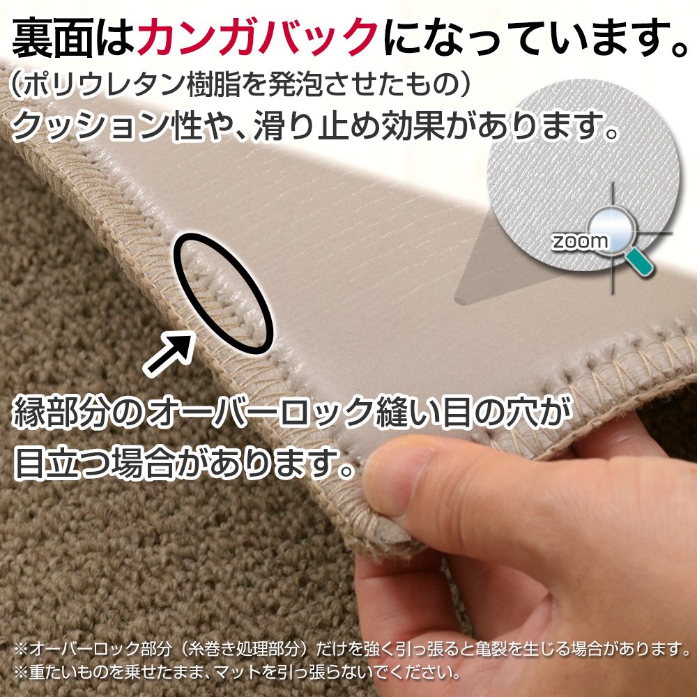- The back side is coated with polyurethane resin and the hole of the overlock seam of the edge part may stand out.
