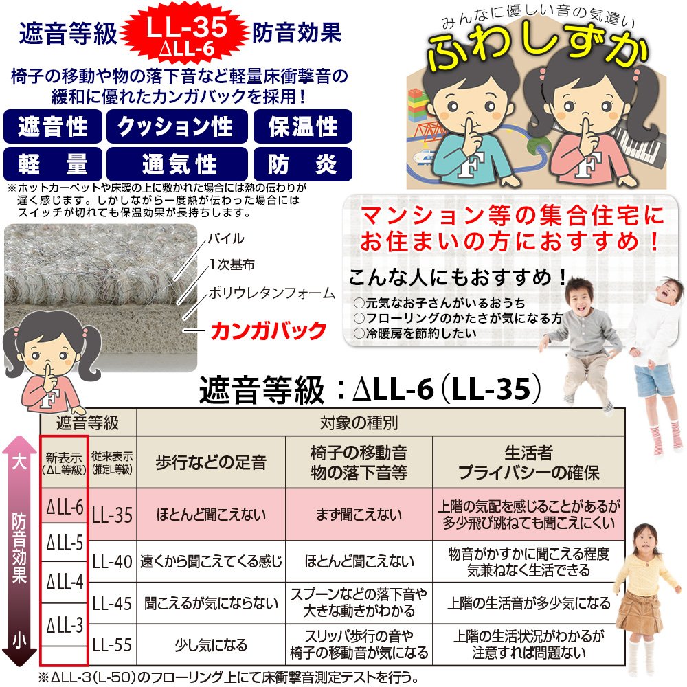 · "Soundproof performance" which cleared the soundproof rating LL - 35 (new display △ LL - 6).
