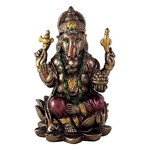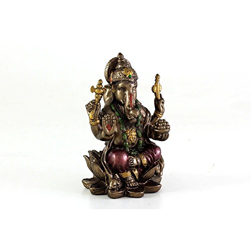 Top Collection Small 3" Ganesh (Ganesha) Hindu Elephant God of Success. Good Protection. Bronze Powder Mixed with Resin - Bronze Finish with Color Accents.