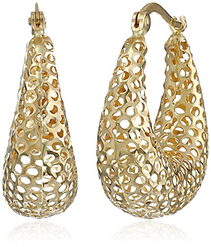 -. Title : 14k Yellow Gold Mesh Diamond-Cut Hoop Earrings