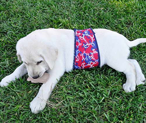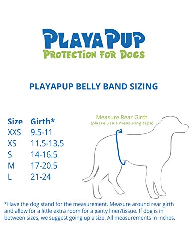 Studio : PlayaPup Publisher : PlayaPup Binding : Misc. Product Description Playapup dog belly bands for male dogs with incontinence problems and/or for house training puppies or new dogs! PlayaPup belly bands offer two great benefits. 1) simply put on the belly band to house train dogs, especially great for puppies. This works great for those dogs who like to dribble and mark around the house. When the dog has it on, the belly band trains them not to pee in the house or when going out. 2) belly bands also provide temporary aid to dogs with incontinence problems, especially geared for older male dogs. Belly bands are not intended to absorb pee, but to inhibit peeing. For urine absorption, just add a panty liner or tissue. Unlike other cotton/denim belly bands on the market, these dog belly bands can stretch and wrap around the dog's girth easily and without harming the dog's delicate coat. Fashionable belly bands come in print or solid fabrics on one side and cool neoprene on the other side. Complementary color edge on all belly bands adds extra support and an added touch of great design. Velcro hook and loop closure for a secure fit. An added benefit: belly bands are made from UV sun protective nylon/lycra material! size chart (measurements are in inches): xx-small - 10-11.5'. X-Small - 12-14.5'. Small - 15-16.5'. Medium - 17-20.5'. Large - 21-24'. Please measure around rear girth and allow extra room for a panty liner or tissue. See sizing chart, next to images, for a better understanding. 0