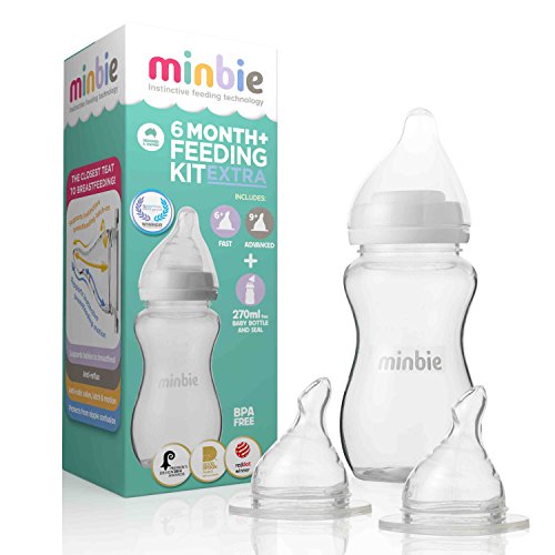 Minbie 6 Month+ Feeding Kit EXTRA Includes both 6+ and 9+ Month Nipples and 9oz Bottle