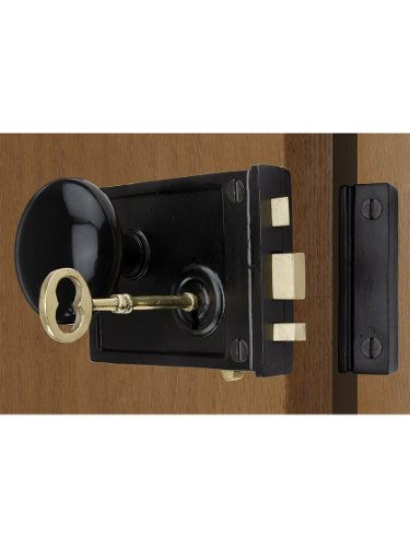 -. Feature : Heavy Cast Iron / Powder Coated to Resist Rust / Reversible for Left or Right Handing / Key Operated Deadbolt / Includes Knobs, Rosette, Key Cover and 2 Keys