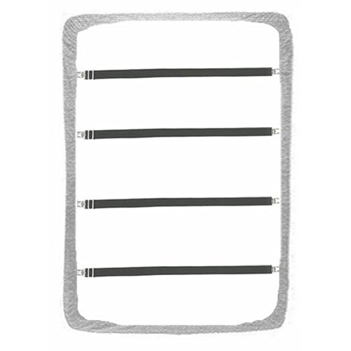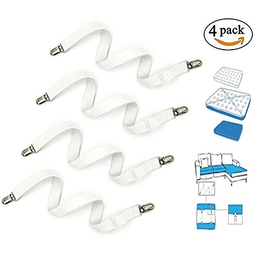 Adjustable length- All straps are adjustable. Works with all types of bed sheets, fitted sheets, flat sheets ,mattress pads,sofa,table,baby's cribs and more.