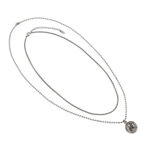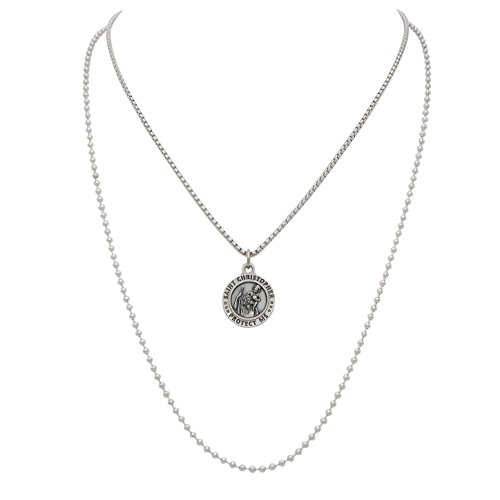 -. Binding : Jewelry -. Brand : Rosemarie Collections -. Color : Silver Color -. Department : unisex-adult -. Feature : Two necklace chains come with this double sided religious military medal for women or men / Stainless steel box chain is 18" with 2" extension and lobster clasp, Silver tone ball chain is 23" with connector clasp / Medal features US military branch and emblem, and detailed image with "Saint Christoper Protect Me" on reverse side / Pendant measure 0.75" width X 1" length / Packaged in a gift box -. Label : Rosemarie Collections -. Manufacturer : Rosemarie Collections -. Model : RC-VSBX-PERL -. MPN : RC-VSBX-PERL -. PartNumber : RC-VSBX-PERL -. ProductGroup : Jewelry -. ProductTypeName : FASHIONNECKLACEBRACELETANKLET -. Publisher : Rosemarie Collections -. Studio : Rosemarie Collections -. Title : Rosemarie Collections Military Branch Insignia St Christopher Pendant Necklace