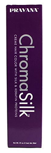 -. Feature : Chroma Silk's low-ammonia formula employs a proP.R.Ietary blend of human hair keratin amino acids and pure silk protein to provide protection, added strength and unparalleled shine. Hydrolyzed silk amino acids, because of their small molecular weight and affinity to adhere to the hair fiber, act as "carrying agents" to help drive color deep into the hair fiber, providing unmatched color vibrancy and durability. / ChromaSilk Hair Color is the finest, most versatile hair color in the professional industry. ChromaSilk's superior dye load ensures complete grey coverage and rich vibrant colors. / 3 oz bottle