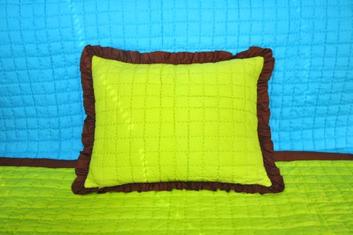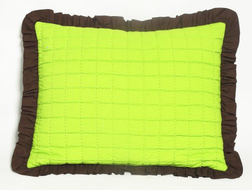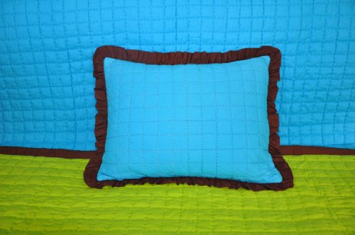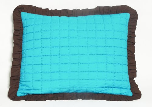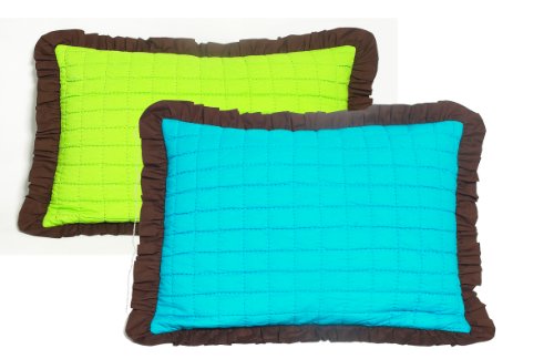 Valley of Flowers Turquoise/Lime reversible quilted zippered Std Sham with chocolate frills