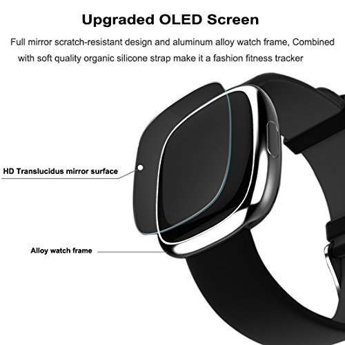 HD Translucidus mirror surface with 0.96" Touch Screen design, Shows Steps, Calories Burned, Distance, Date and Time, etc these data clearly; you can select or control each function by touching screen. IP67 Waterproof, not afraid of washing hands, walking under rain.
