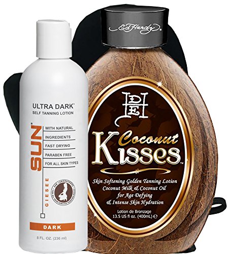 -. Title : Ed Hardy Coconut Kisses Golden Tanning Lotion, 13.5 oz | Sun Laboratories Ultra Dark Self Tanner 8 oz | Self Tanning Applicator Mitt - Darkest Sunless Tan Cream | Instant, Fast-Drying, Streak-Free Tan