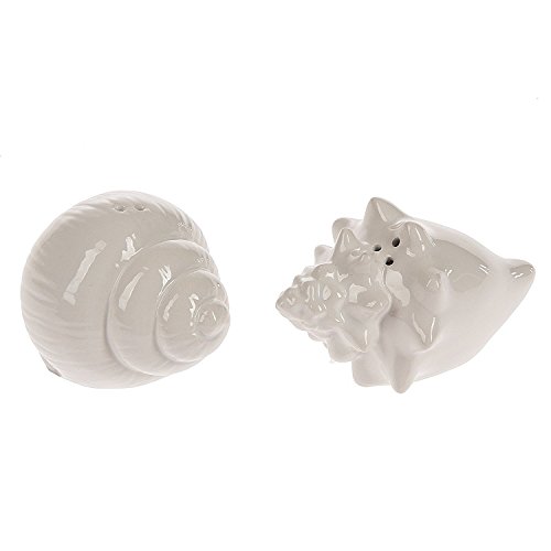 Conch and Sharks Eye 2 Piece White Glazed Dolomite Salt and Pepper Shaker Set
