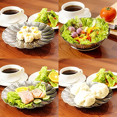Check out the benefits of Gourmet Revolution Vegetable Steamers: ● Food grade 100% stainless steel construction ensure safe and healthy cooking ● Can fit most pots or pans; expandable from 5.5 inches to 9 inches ● Steaming foods retains important antioxidants, vitamins and minerals while preserving color, texture and flavor