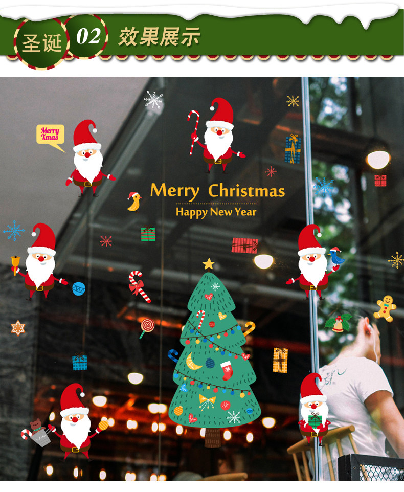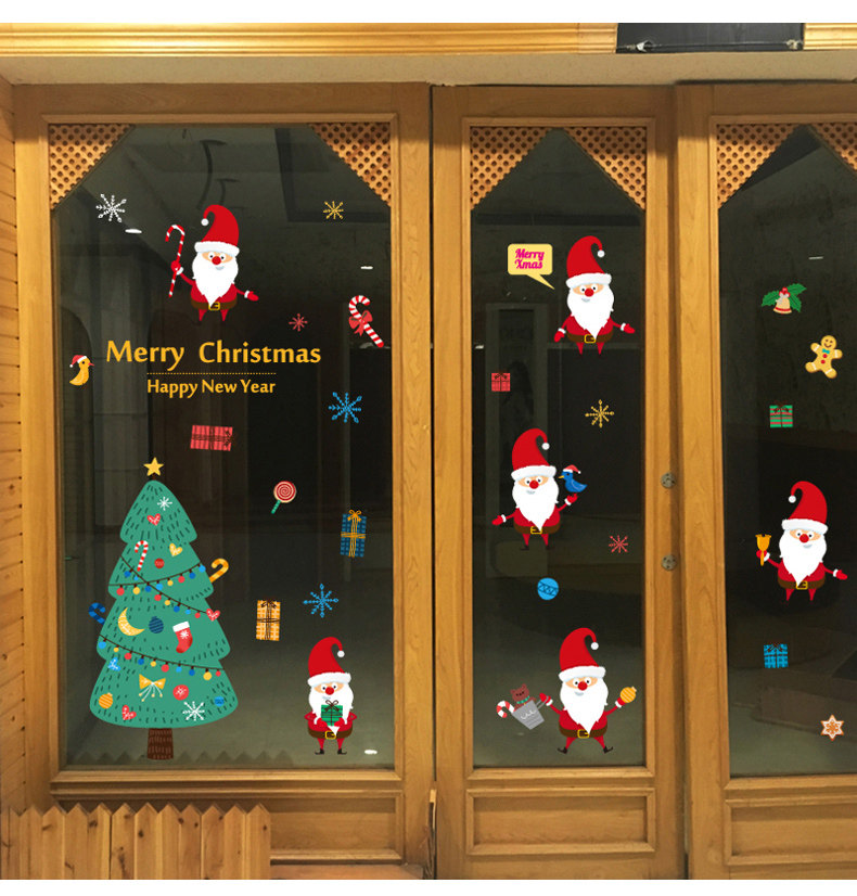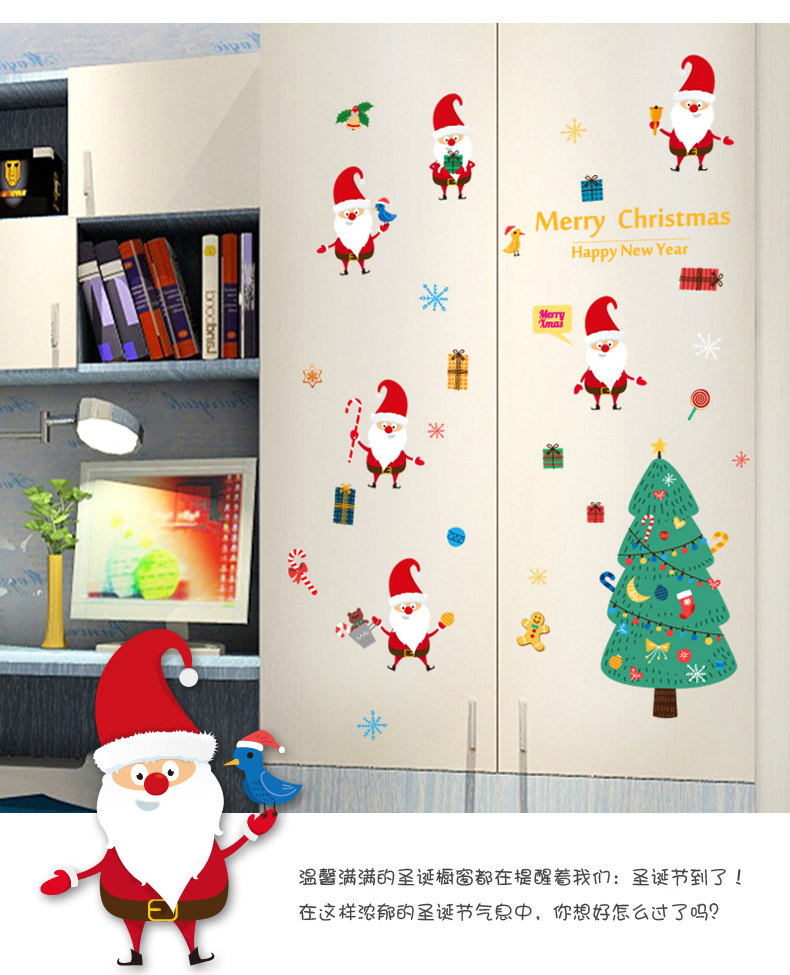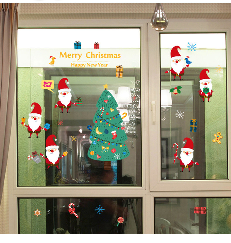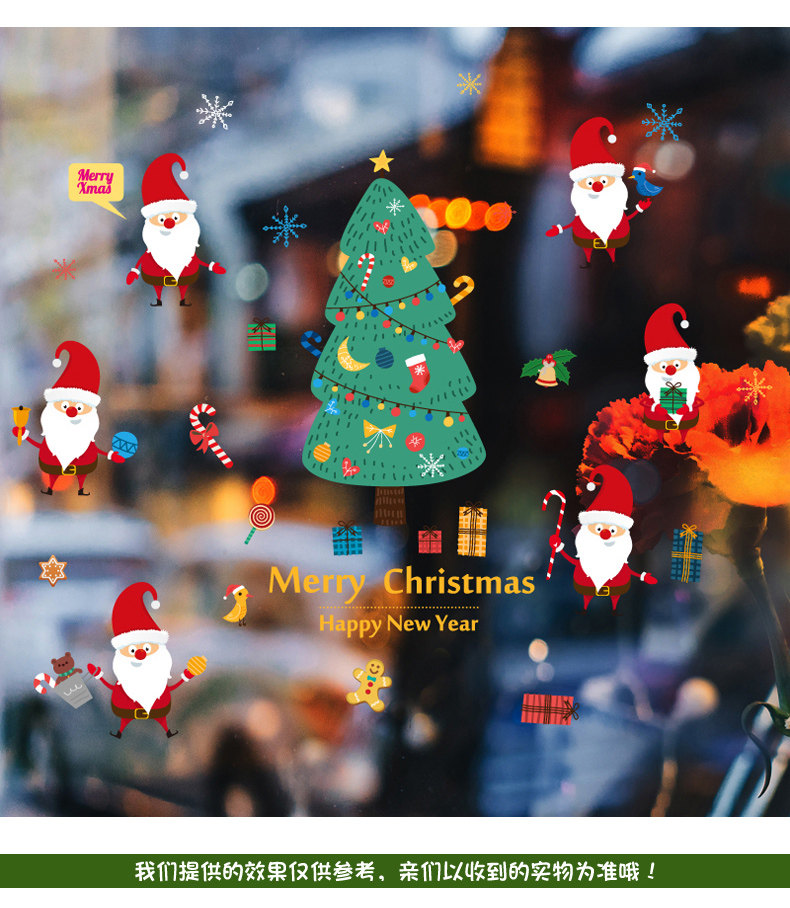 卡通圣诞节装饰树贴画雪花橱窗贴纸玻璃窗户壁纸自粘门贴墙纸墙贴