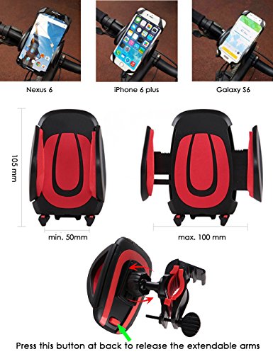 Bike Mount, E-TRENDS® Universal Bike and Motorcycle Handlebar, Roll Bar Mount for iPhone 6 6+ 6S 6S plus 5S 4S, Samsung Galaxy S7 S6 S5 S4 Note 3 4 5,Nexus 5 6p,HTC,LG, (Black/Red)