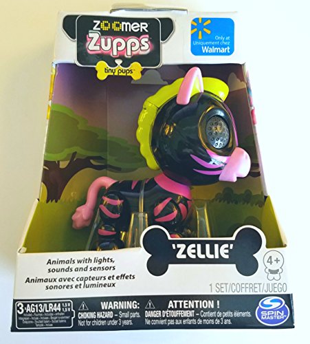 Introducing Zoomer Zupps Safari Zellie, the newest pocket-sized interactive friend that fits in the palm of your hand. This safari themed zebra is ready for adventures. Complete with poseable limbs, light-up LED eyes and responsiveness to touch, Zellie is always ready to play! Press Zellies nose or pet the top of its head and hear adorable sounds. Listen as it interacts with you, send kisses and maybe even tells you I love you. But leave your Safari Zupp alone for too long and you may hear whimpers. Each Tiny Zupp has a secret trick! Play the Rocking Repeat Game by pressing its nose and petting its head at the same time. The eyes will flash in a specific pattern. Press the nose to repeat the pattern. Get three patterns in a row correct to win the game! With six new Zoomer Safari Zupps to adopt and a collector card to learn about each Zupps unique personality, kids will want to bring them all home.Feature