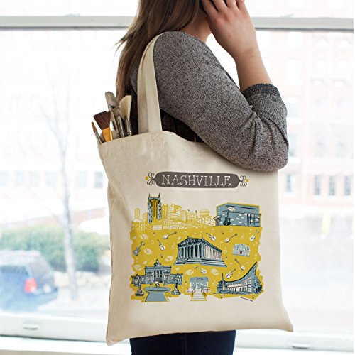 - NASHVILLE THEMED: This Nashville tote bag is perfect for carrying your groceries home from the farmer’s market. It features 5 of the most significant Music City landmarks: The Nashville Parthenon, the Belmont mansion, the Country Music Hall of Fame, Grand Ole Opry, and RCA Studio B. Made of 100% cotton sheeting with self-fabric handles.