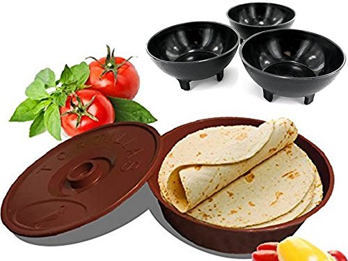 Mexican Fiesta Party Gift Set - Tortilla Keeper & Salsa Bowls (Set of 3) - Great for Mexican Food Catering, Cindo de Mayo Parties, & more!