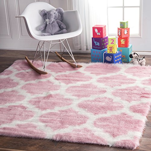 (Rugs USA)/Furniture Decor/Home Decor/DIRECT FROM USA/Faux Sheepskin Solid Soft and Plush Cloud Trellis Kids Pink Shag Area Rugs, 5 Feet by 5 Feet (5...