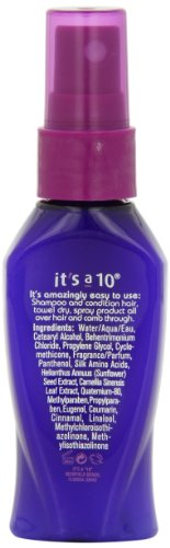 Studio : It's a Ten Publisher : It's a Ten Binding : Health and Beauty Product Description Repairs dry, damaged hair while adding shine. Detangles and controls frizz Seals and protects hair color. Prevents split ends and stops hair breakage. Creates silkiness while enhancing natural body Flat iron spray and thermal protector. 0