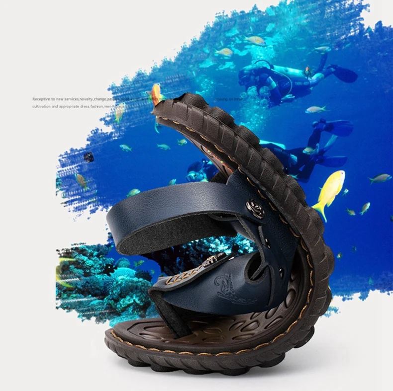 Model Number:2018 beach shoes men's leather sandals