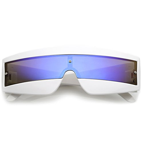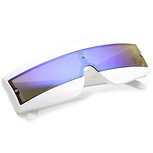 DetailsPerfect for costumes and parties, these futuristic sunglasses feature a shield style frame with extra wide temples. Complete with a colored mirror mono lens, these bold shield sunglasses are the finishing accessory for robot or cyclops costumes. Made with a plastic based frame, reinforced metal hinges, and reflective 100% UV protected lenses.
