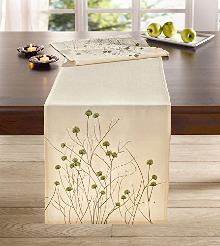-. Feature : Tischläufer / matter Grundstoff in hellem Sandton, / aufwändig bestickt mit filigranem Gräsermotiv, 100% Polyester / 40 x 160 cm
