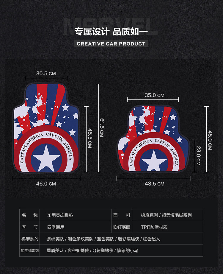 • 颜色分类:u0026nbsp;Q萌蜘蛛侠后片一对 条纹美队后片一对 咖色条纹美队后片一对 星盾美队后片一对 蓝色美队后片一对 夜空蜘蛛侠后片一对 奇异博士后片一对