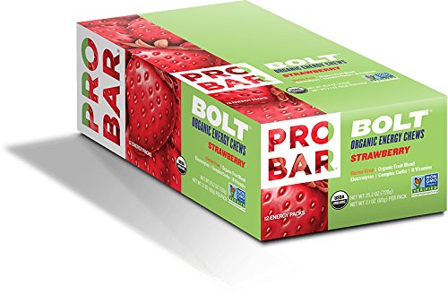 PROBAR - BOLT Organic Energy Chews - Strawberry - Gluten-Free, Organic Fruit Blend, Electrolytes, Complex Carbs, & B Vitamins - Pack of 12