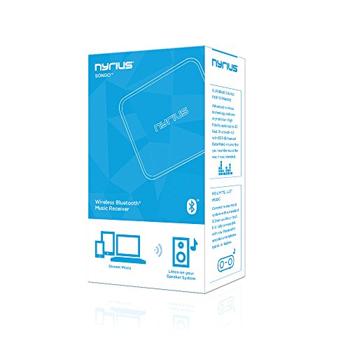 Who wants to keep and store all of the wires, adapters and accessories typically used to listen to music? If you own several types of devices, you might need a drawer full of wires just to listen to your favorite tunes. Nyrius Songo Bluetooth Music Receiver eliminates wires allowing you to stream music from your smartphone or tablet to your speaker system. Control your playlist wirelessly while your relaxing on the couch or let your friends take turns sharing their music from their smartphones at your next party.