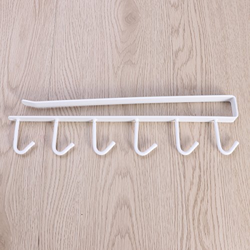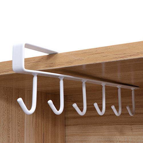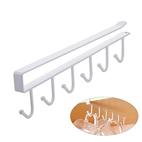 OUNONA 6 Hooks Under Shelf Cup Holder,Mutifunctional Kitchen Utensil Rack for Hanging(White)