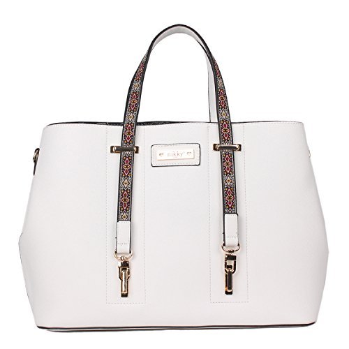 Polished meets fun! The Ocypete satchel bag's solid exterior and fun interior will give your outfit a unique look. Exterior Features: Made of high quality very finely marbled eco-leather. Solid all around and features tribal print inspired double handles. Sturdy flat base helps it keep its shape. Snap closures on the side for more room. Gold hardware with signature Nikky nameplate. Adjustable and detachable shoulder straps, extends 41"-46" with a 5" shoulder drop. Interior Features: Large compartment with attached pouch. Soft eco-leather finish interior with cheetah print. For cleaning, wipe with damp cloth.Feature
