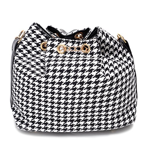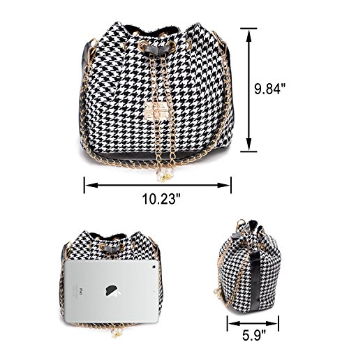 -. Title : Vintga Women Canvas Shoulder Bag Handbag Messenger Drawstring Bucket Bag with Pearl Chain Pumping Belt