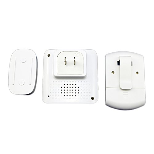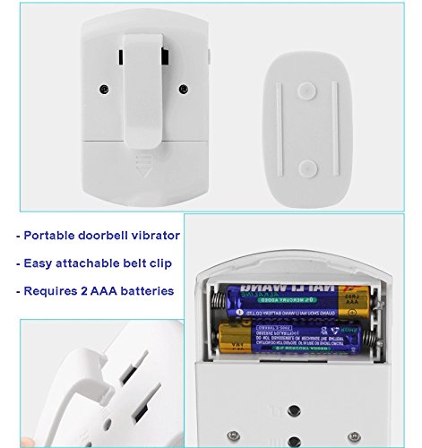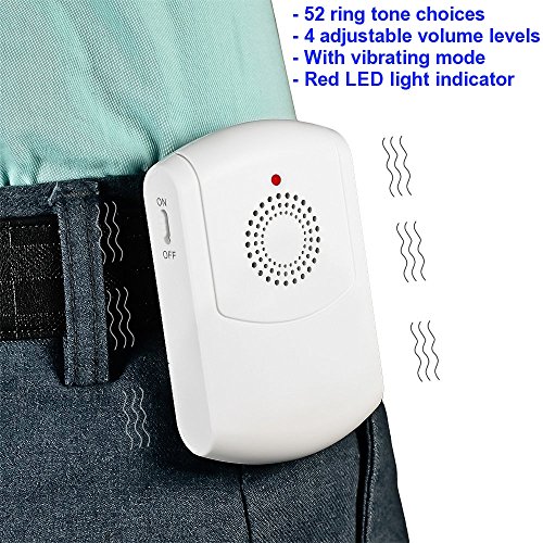 SadoTech Flashing Wireless Doorbell with Portable Vibrating Receiver (with belt clip), Transmitter Button and Plugin Flashing Receiver Operating at 500-feet Range with Over 50 Chimes,Model H (White)