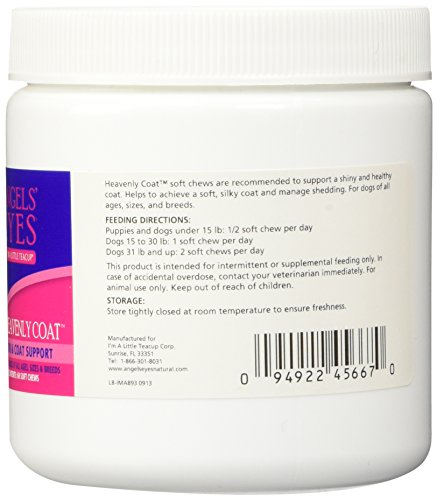 -. Feature : Heavenly Coat(TM) soft chew helps to achieve a soft, silky coat and manage shedding / Heavenly Coat(TM) soft chews are recommended to support a shiny and healthy coat / Heavenly Coat(TM) soft chews 60 count
