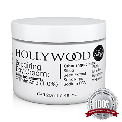 -. Binding : Misc. -. Brand : hollywoodskin -. EAN : 5060381537644 -. Feature : The strongest available day cream for skin repair - Acne doesn't stand a chance / 400% STRONGER than any other - 1% Salicylic Acid / Clinically proven to give better results, faster / A luxurious day cream that not only destroys acne, but also enriches and heals your skin / You'll be shocked how fast your skin tone improves as your blemishes and marks begin to disappear -. Label : hollywoodskin -. Manufacturer : hollywoodskin -. NumberOfItems : 5 -. PackageQuantity : 1 -. ProductGroup : Beauty -. ProductTypeName : BEAUTY -. Publisher : hollywoodskin -. Studio : hollywoodskin -. Title : Repairing Day Cream - with 1% Salicylic Acid. 400% STRONGER than any other. Clinically proven to give better results, faster. The most effective skin-healing day cream available. 120ml Jar