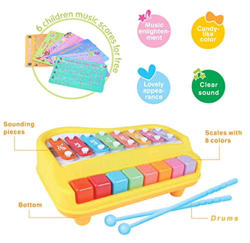 Comes with 6 Sheets of Nursery Rhymes and 2 Tapping Drums